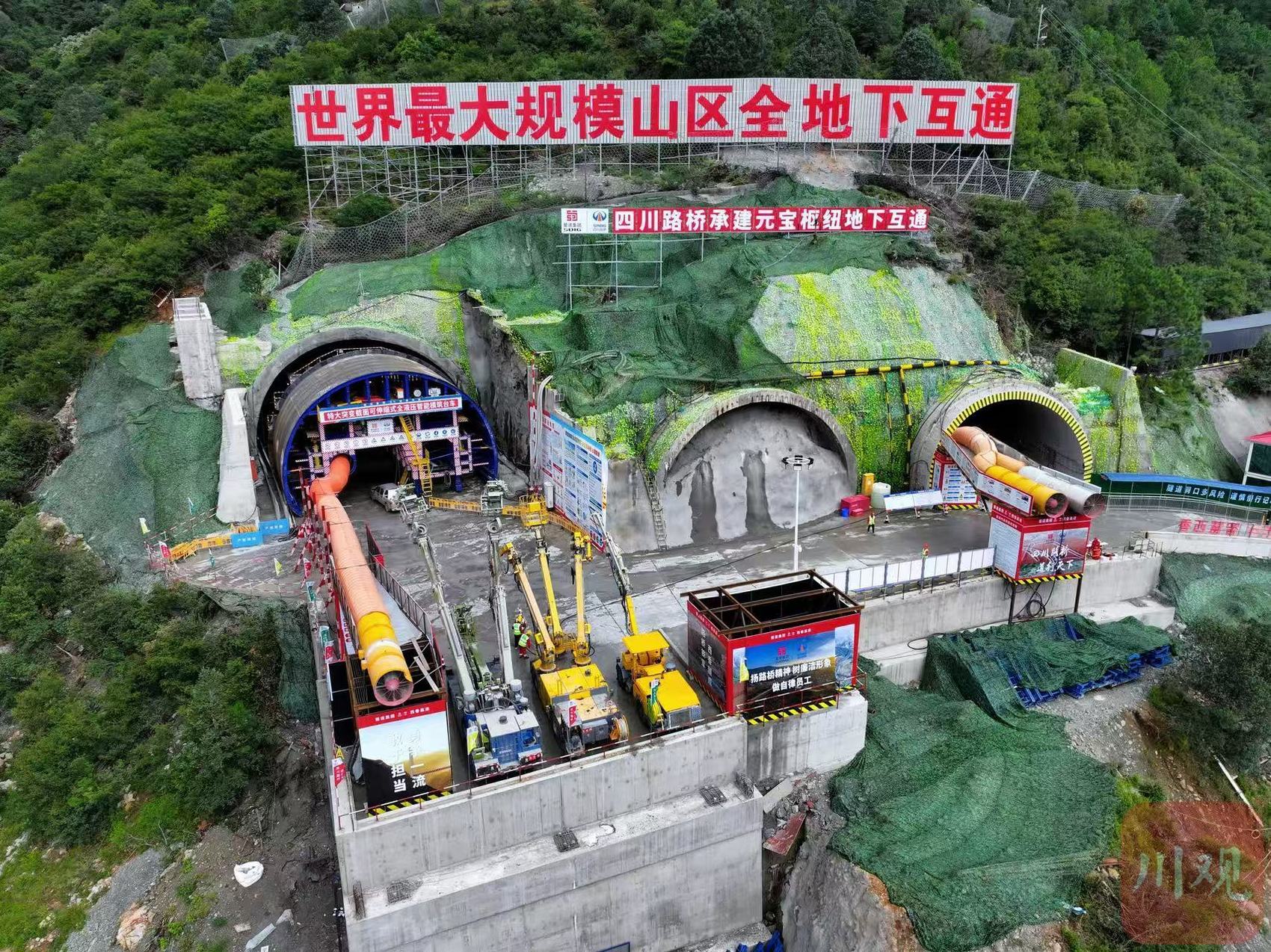 9月初,西香高速元寶樞紐地下互通D匝道隧道順利實現進洞施工,標志著該項目建設正式邁入全面施工階段。這座修建在大山“肚子”的“立交橋”,被WRCA(世界紀錄認證公司/機構)認證為“世界最大規模山區高速公路全地下互通(在建)”,是西香高速九大超級工程之一。
