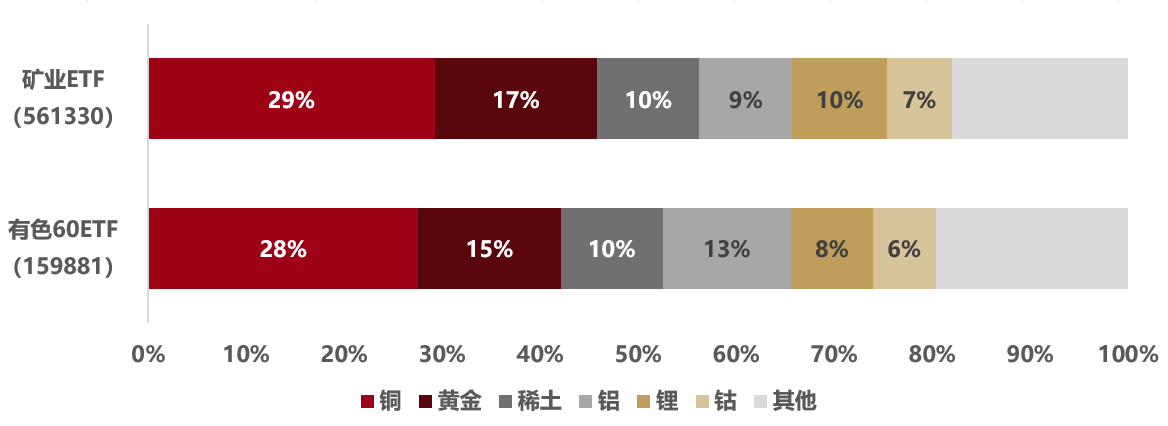 圖:礦業ETF(561330)和有色60ETF(159881)成分股行業分布