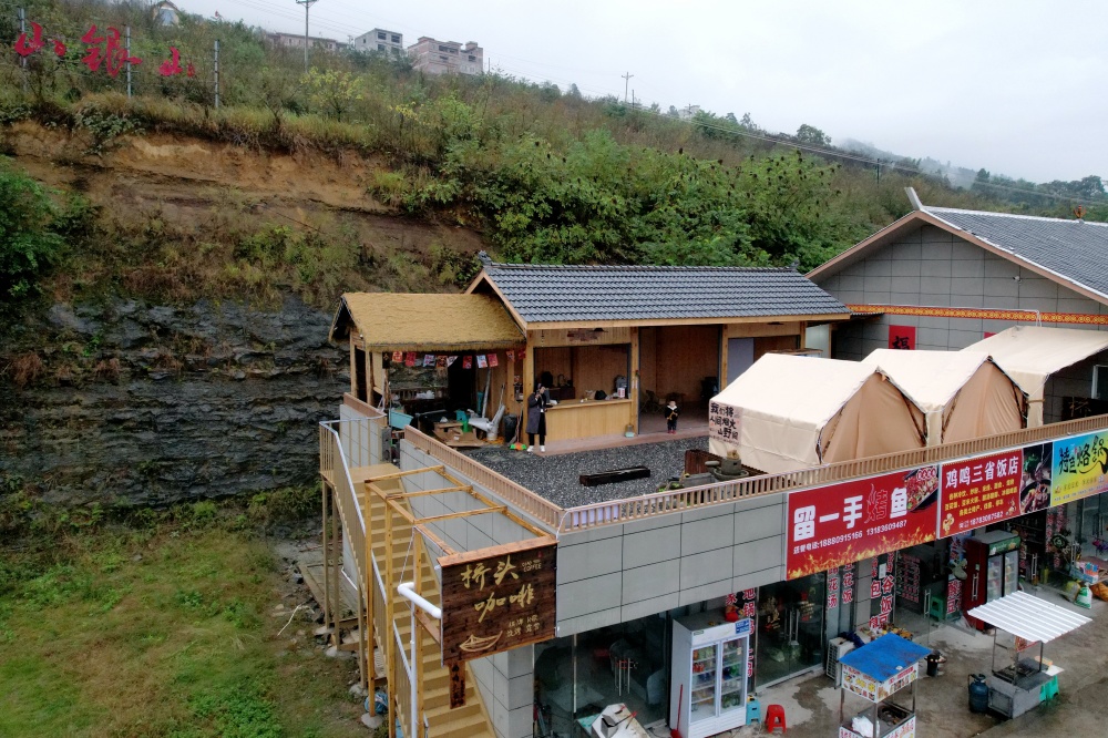 水潦場鎮,“電商創客”樊朋飛計劃將服務延伸至對岸村落,讓農產品借互聯網遠銷;建材商胡云健建起的酒樓,春節半個月盈利就達上萬元;村民王松濤的“橋頭咖啡”迎來了三省游客,年底還想通過直播帶貨,銷售村里種植的甜橙、臘肉……