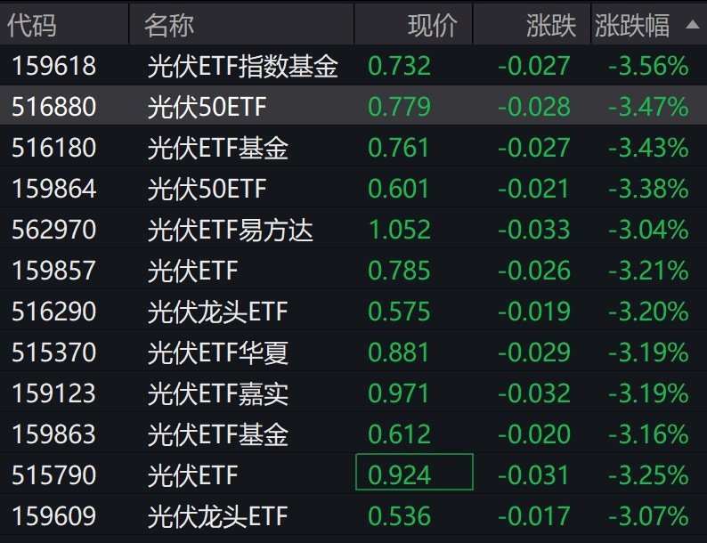 光伏概念股走弱,陽光電源、特變電工跌超5%,隆基綠能、通威股份、德業股份跌超3%。